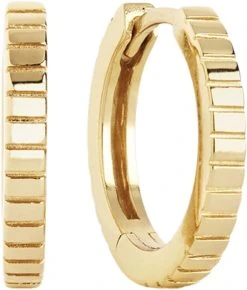 De chikke hoops i guldbelagt sterling sølv er dekoreret med smukke nålestriber og måler 1,5cm. Øreringene tilhører Pinstripe kollektionen der består af smykker dekoreret med de fine Carré nålestriber.
