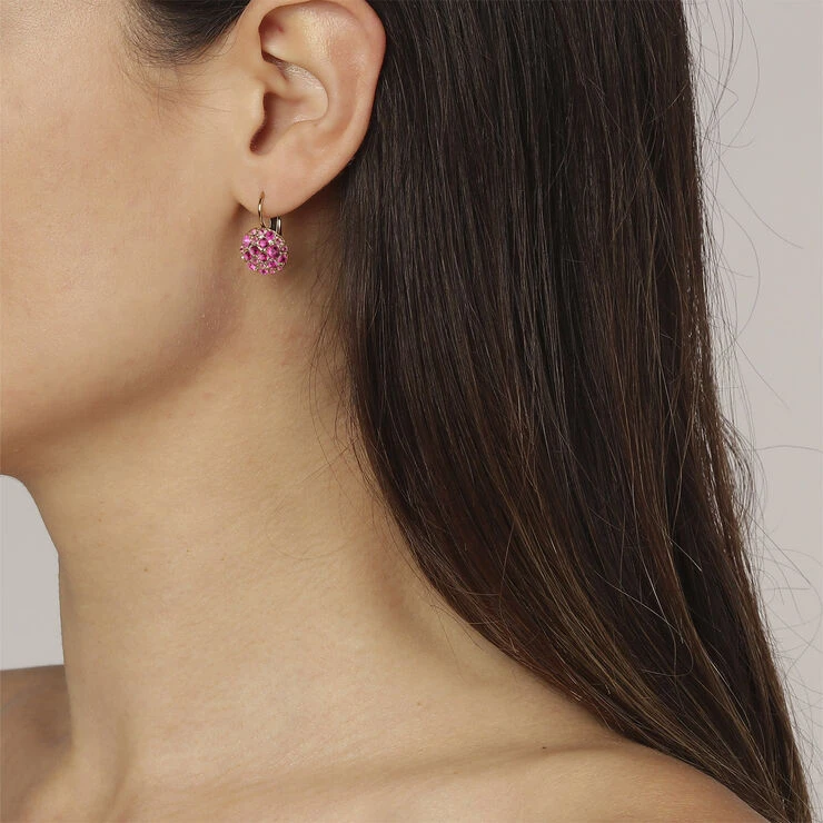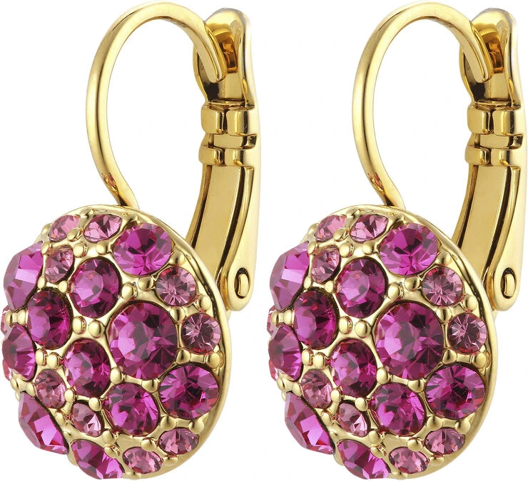 BLOST – en meget spændende og nytænkt dog klassisk ørenring, der virkelig står frem ved det at stensætningen er så spændende.Ørenkrogen er produceret i kirurgisk stål, mens selve smykkets materiale er messing der har fået en meget holdbar plattering / belægning. Smykkestenene er fra Swarovski og de mest klare krystaller der findes. Brug denne ørenring sammen med kæden BARLETTE der har samme type design.BLOST, der er dansk design, allergistestet og nikkelfri er naturligvis designet af DYRBERG KERN og her vist i smukke pink krystaller på en guldtonet baggrund.