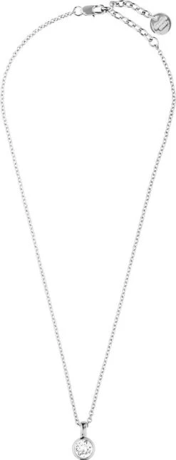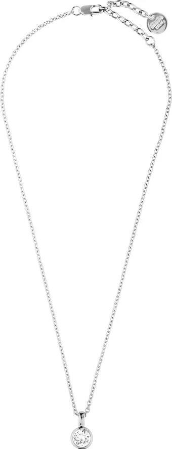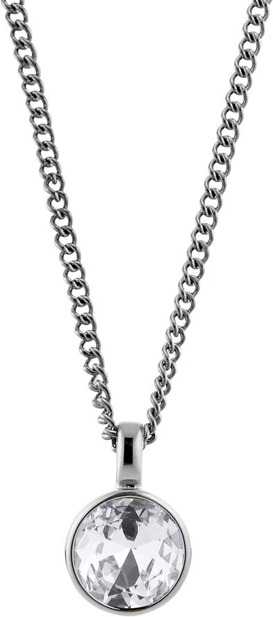 Klassisk og feminin sølvbelagt halskæde med solitairevedhæng med swarovski elements. Længde 40 cm + forlængerkæde.