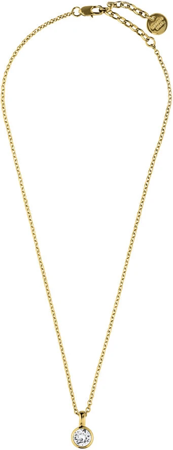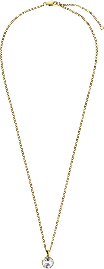 Klassisk og feminin guldbelagt halskæde med solitairevedhæng med swarovski elements. Længde 40 cm + forlængerkæde.