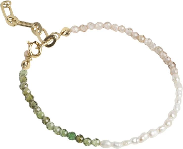 Om smykket- Gabriella armbåndet er smukt, lige gyldig hvordan du vender det. Alle sider af armbåndet spiller nydeligt sammen i forhold til farve, om end du vender CZ-stenene, perlerne eller kæden opad. Alle elementer af Gabriella armbåndet er nøje udvalgt, og der er ikke gået på kompromis med kvaliteten. Designet og farverne er nytænkende, samtidig med du får et meget sofistikeret armbånd. Sæt Gabriella armbåndet ved siden af en af vores guldfarvede armbånd, og du får et lækkert sæt til enhver lejlighed. Gabriella findes også som halskæde. __________