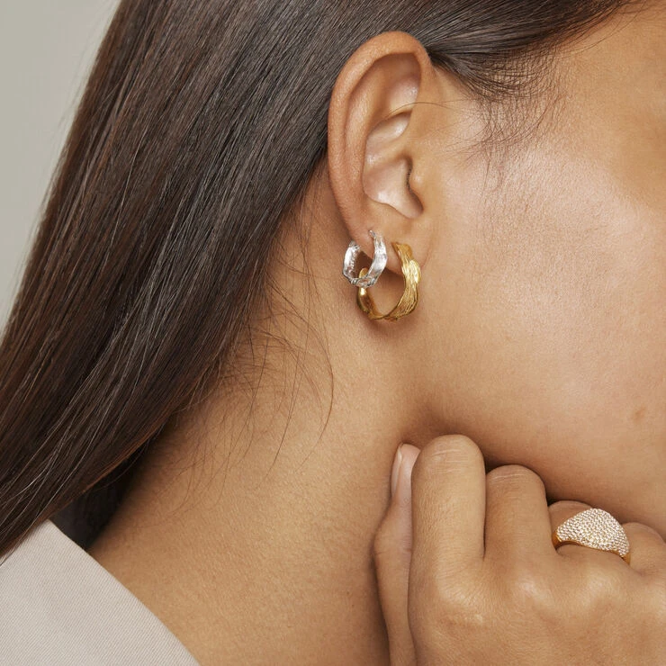 Bemærk- Prisen er pr. par Om smykket- Alle bør eje et par Everly hoops, hvis du spørger os. Everly hoopen er ultratynd, hvilket gør den super let, og behagelig at have på. Den er udformet på smukkeste, håndlavede vis, med en rå overflade, der krøller sig smukt op i siderne. De har den perfekte størrelse og bredde, som gør dem til et par unikke hverdags-hoops, der er specielle i sig selv, men også nemme at kombinere med dine andre smykker. Everly findes i både sølv- og forgyldt sterlingsølv. __________