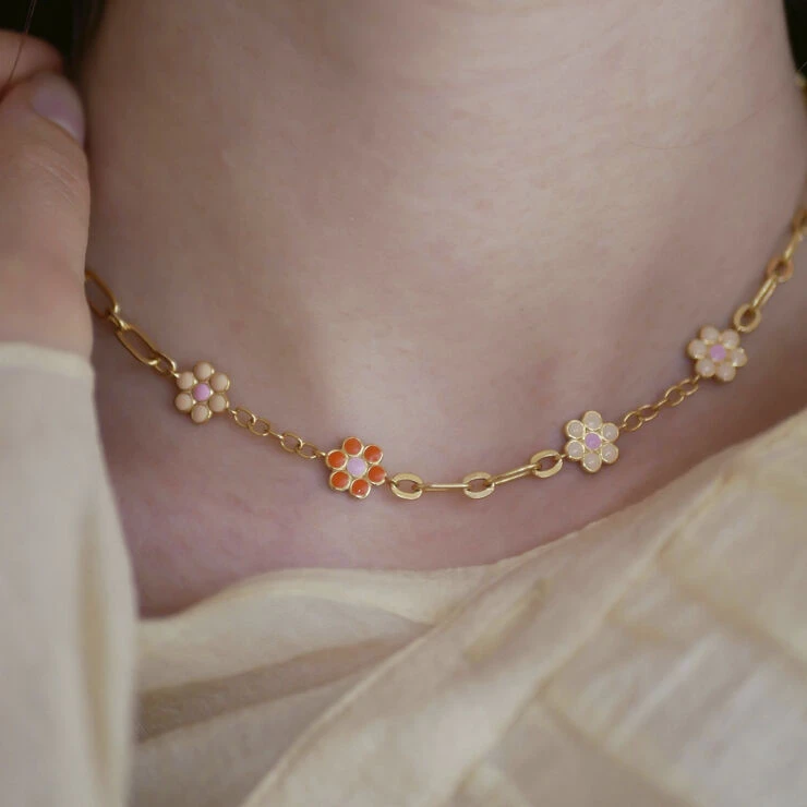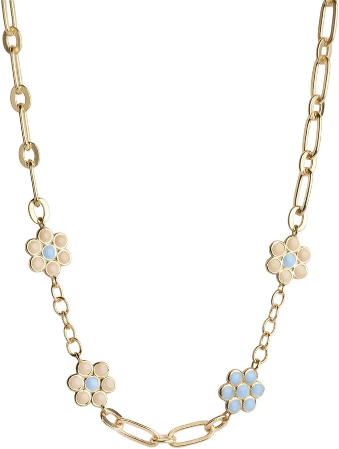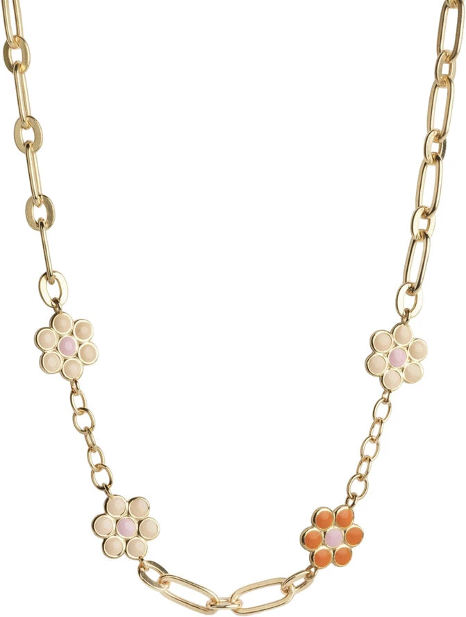 Om smykket- Blossom halskæden er noget helt specielt. Her har vi taget vores genkendelige emalje til nye højder, og har skruet helt op for farverne. Blossom halskæden har et eksklusivt og dog stadig legende udtryk, hvilket er essensen af ENAMEL Copenhagen. Blossom halskæden har en orange/beige/lyserød side og en beige/lyseblå side, så du selv kan vælge farvekombination alt efter humør. Der findes også et matchende armbånd. og studs.