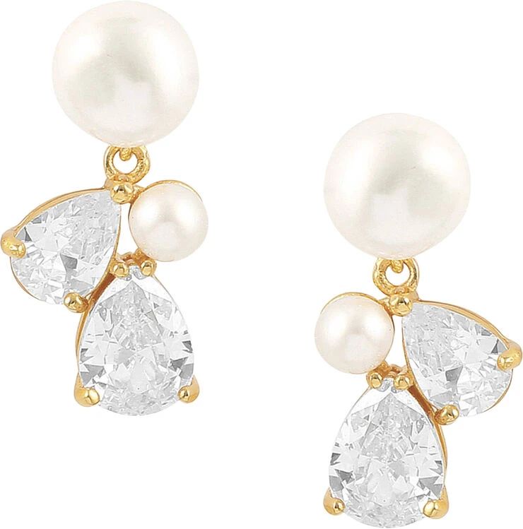 Sterling sølv forgyldt med 18 karat guld, cubic zirconia og ferskvandsperler. Længde: 2 cm