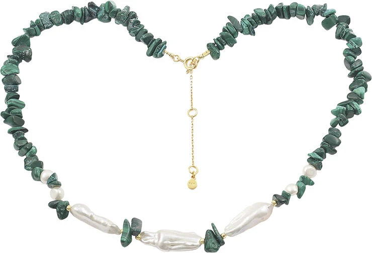 Sterling sølv forgyldt med 18 karat guld og ferskvandsperler. Længde: 36 cm + 5 cm flex