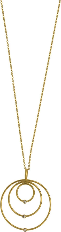 Denne halskæde giver med sine fine detaljer et helt særligt og feminint look. Serien, er inspireret af efterårets blade der daler ned fra himmelen, rammer vandet spreder symetriske ringe. Halskæden er i mat guldbelagt sterling sølv.