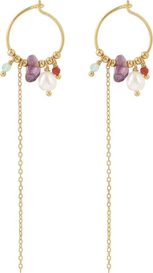 Sterling sølv forgyldt med 18 karat guld og ferskvandsperler. Længde: 7 cm
