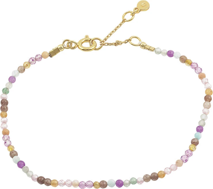 Sterling sølv forgyldt med 18 karat guld, natur og semi precious sten. Længde: 16 cm + 3 cm flex