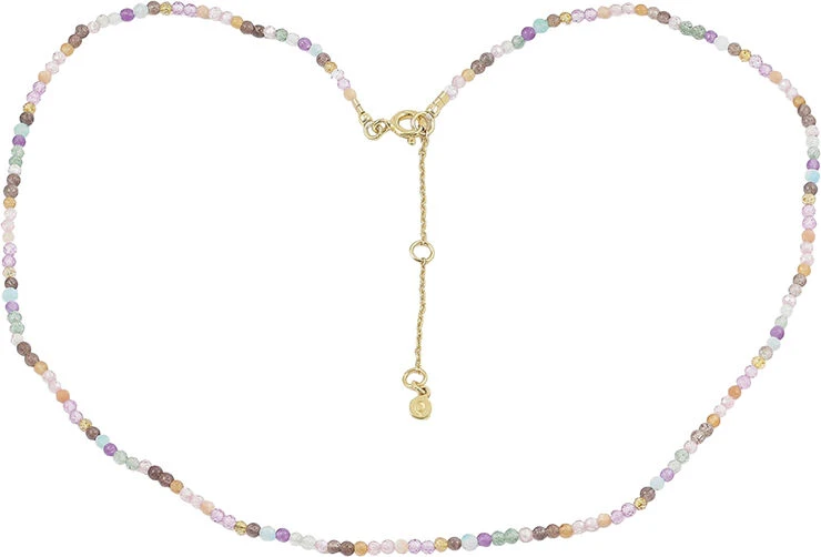 Sterling sølv forgyldt med 18 karat guld, natur og semi precious sten. Længde: 38 cm + 5 cm flex