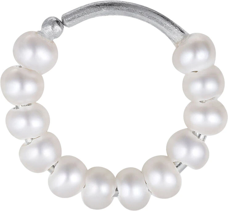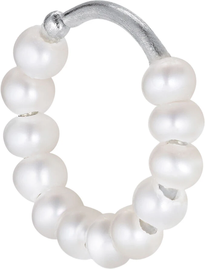 Yndig lille vrid ørering i sterling sølv med 12 små ferskvandsperler. Øreringen måler ca. 1,2 cm. Row perle vrid øreringen fremstår særligt elegant, da den i stedet for en traditionel lukkemekanisme åbnes og med et forsigtigt vrid til siden. Brug øreringen alene for et klassisk look eller stack dem hvis du har flere huller i ørene