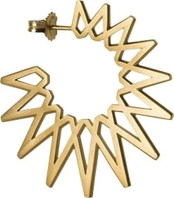 Stor sun ørering i mat, forgyldt sterlingsølv. Den har en diameter på 40 mm og den længste trekant måler 15,2 mm. Øreringens skarpe og rene linjer danner form som en sol og skaber derved et alternativt og unikt udtryk. Øreringen giver kant til ethvert outfit og er derfor det perfekte statement smykke til at fuldende dit look. Ø: 40 mm.