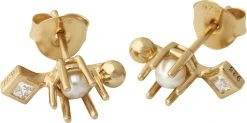 Øreringen sælges enkeltvis. Ørering i 925 sterling sølv og forgyldt med 14 karat guld. Men en rund krystalperle og en cubic zirconia. Størrelse 1,4 cm.