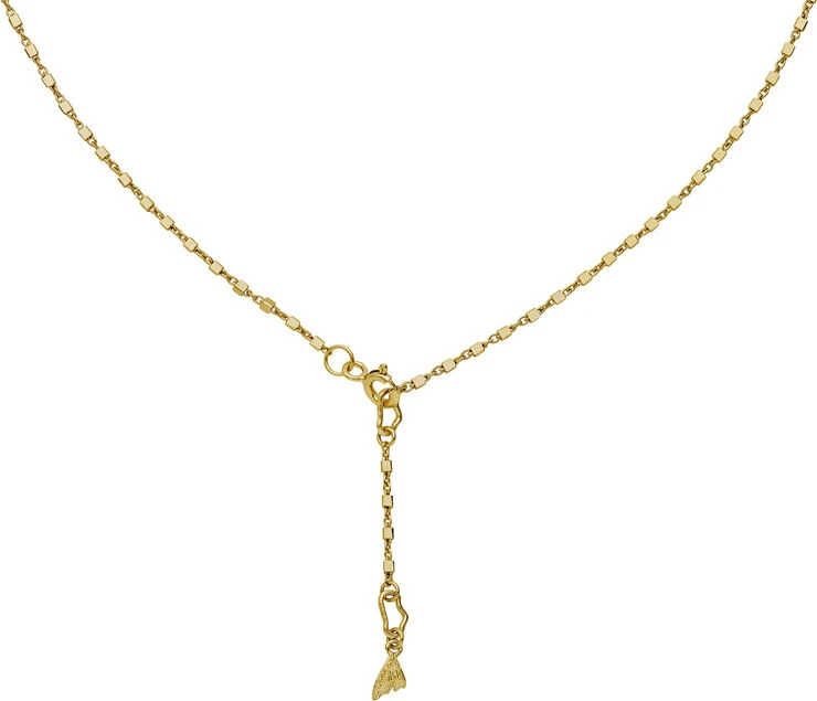 S� simpel. S� smuk. Livi-k�den er en hyldest til det smukke i det enkle, men skiller sig ud fra det ordin�re med et lille gyldent vedh�ng med form som en natsv�rmervinge. Maanestens SS22 kollektion er inspireret af alle de organiske former, der findes omkring os, og de kreative energier, de giver beskueren. Kollektionen, Surrounding Shapes, hylder h�ndv�rket og er som alle Maanestens smykker h�ndlavet p� eget v�rkssted i Jaipur, Indien. Materialer: genanvendt sterling s�925) belagt med 18 karat guld L�ngde: 41 cm, justerbar til 40 cm