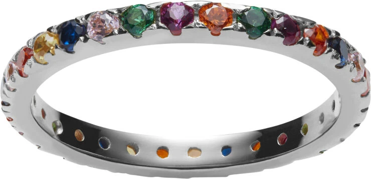 Flot og elegant ring med et væld af farvede zirkoner indsat hele vejen rundt. Tag ringen på alene eller stack den sammen med andre af dine ringe.