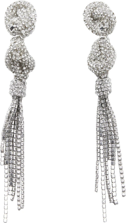 Faceted crystals, long design, 12 cm long, decorative knots, metallic press stud fastening, party and events collection.