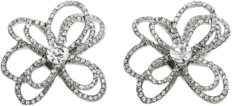 Floral pattern, faceted crystals, metallic press stud fastening, 4 cm long, party and events collection.
