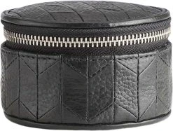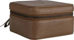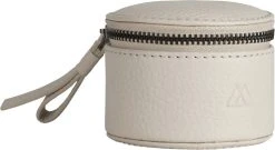LovaMBG Jewelry Box fra Markberg. Lækker smykkeboks i skind. Lukkes med lynlås. Indeholder en tyk smykkepude til ringe, samt 3 flade smykkelommer til kæder mm. 100% bomuldsfor.