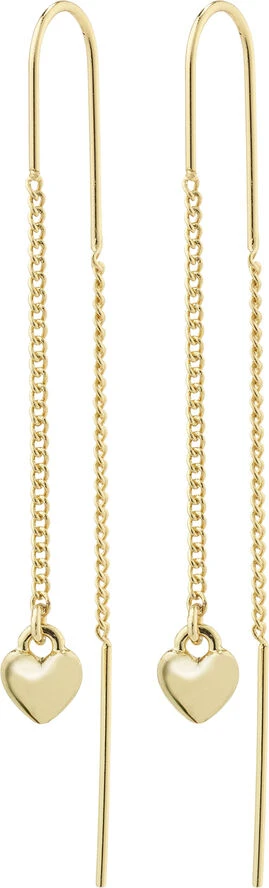 Let the love flow! Guldbelagte kædeøreringe med små hjertevedhæng er et sikkert hit uanset outfit og anledning. Øreringene har et elegant, timeless udtryk, der altid vil være in style. Brug de guldbelagte goodies med bomberjakke og jeans for at tilføje lidt ekstra cuteness eller som en særlig gave til en special occasion. Øreringene er lavet af min. 75 % genanvendt materiale.
