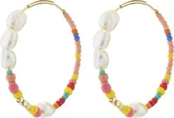 Sun, fun og farver! De store, farverige hoop-øreringe med ægte ferskvandsperler er garant for et gennemført sommerligt look. Brug dem til ethvert outfit, der trænger til et strejf af farve og lidt beachy vibes. Style dem med sommerens perlehalskæder, ankelkæder og flipflops for the tropical look.