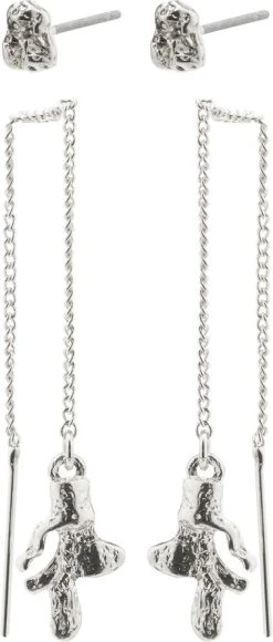 Pilgrim BLOSSOM Recycled Kæde øreringe 2-i-1 Sæt Sølvbelagt