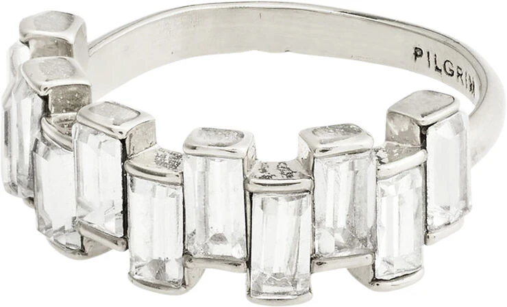 Breathe, laugh, love and create! Skab et unique og classy look med den sølvbelagte ring, der er en del af Pilgrims CREATE-kollektion. Forskudte krystaller i rektangulært mønster giver en cool struktur og eye catching effekt. Style med flere glam pieces and let the party begin! Ringen er et recycled item, der er lavet af min. 75 % genanvendt materiale.