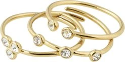 Pilgrim GOLD-PLATED KAMARI STACKABLE RINGS W/ CRYSTALS, 3-IN-1 SET