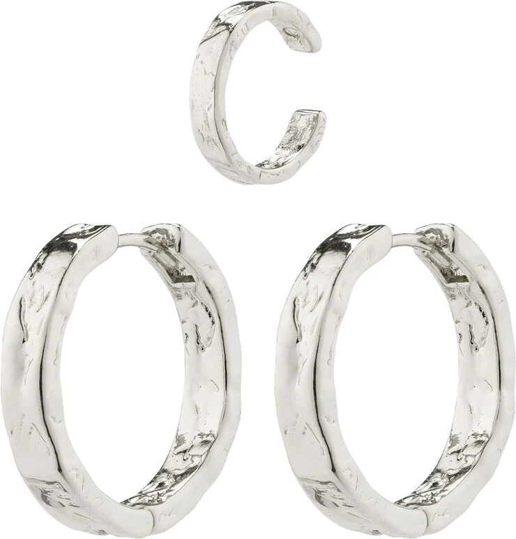 Kindness is contagious! Spred kindness med det sølvbelagte øreringe-sæt fra Pilgrims Kindness-kollektion. Du får et par hoops i et kantet og chunky design med en organisk-præget overflade og en matchende ear cuff, som giver dit look et ekstra finishing touch. Med inspiration fra naturens irregulære strukturer får øreringene en lækker handcrafted quality feel, der tager dit outfit til nye højder.