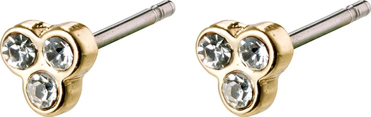 Guldbelagte ørestikker med tre klare krystaller. De indfattede krystaller er samlet i en fin lille buket, der sidder midt på øreflippen og reflekterer lyset. Et diskret blikfang, der understreger en graciøs stil. Ørestikkernes yndefulde udtryk passer godt til et enkelt og feminint outfit og kan fint kombineres med andre af Pilgrims smukke øreringe.