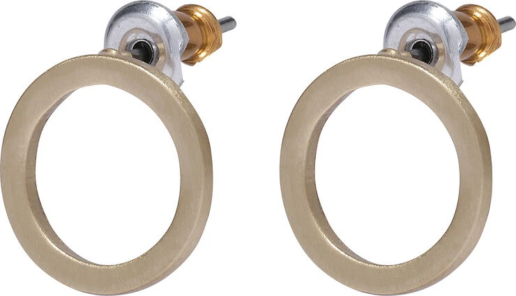 Guldbelagte ringe på ørestikker. En kraftig kantet ring med en rustik, mat overflade. Et flot og lidt råt alternativ til de klassiske ringe, der går gennem øret. Disse øreringe kan hurtigt blive dine hverdagsfavoritter.