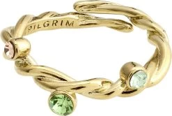Pause and shine a little! Guldbelagt ring fra Pilgrims PAUSE-kollektion, der er inspireret af nuet right here, right now. Ringen har et elegant og organic shaped snoet design med multifarvede Preciosa-krystaller i rosa, grøn og hvid. Et design, der tilføjer en lækker, eksklusiv vibe og handcrafted feel til dit look. Ringen er lavet af min. 75 % recycled materiale med omtanke for miljøet.