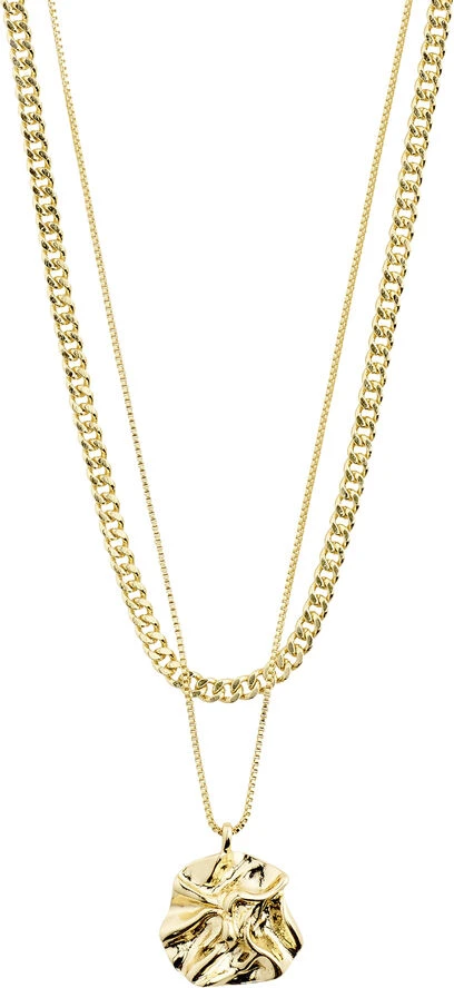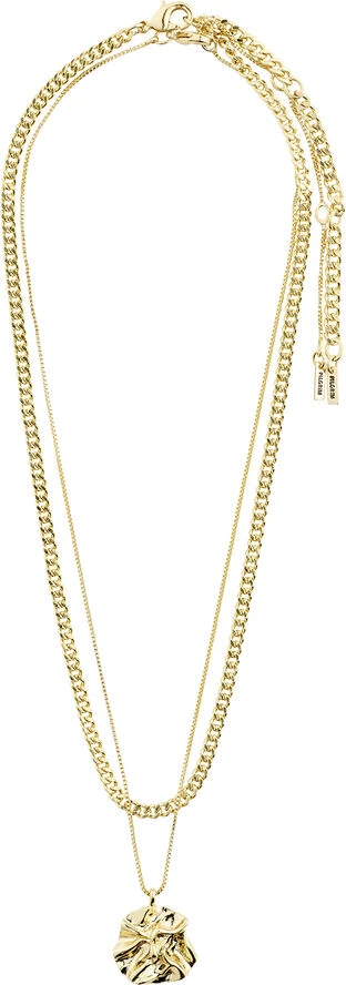 Discover natures beauty med den guldbelagte halskæde fra Pilgrims Willpower-kollektion. 2-i-1 sættet leger med kontrasterne og kombinerer et feminint organisk vedhæng med en powerful curb chain. Vedhængets irregulære shapes giver en handcrafted feel til kæden, der kan bæres alene eller i kombi med panzerkæden i et stylish layered look. Halskæden måler 40 cm + 9 cm forlængerkæde.
