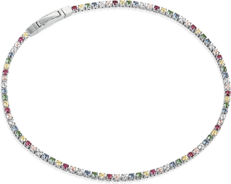 Armbånd i rhodineret sterlingsølv 925 med blankpoleret overflade og facetslebne multifarvede zirkoner.