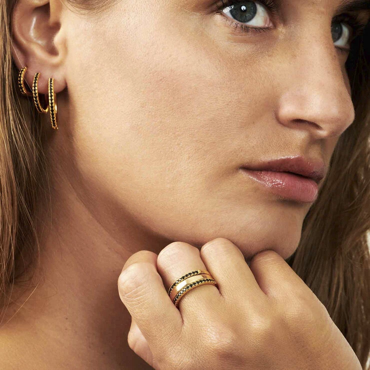 Ellera-kollektionen fra Sif Jakobs Jewellery er sparklende og enkel og står for elegance og glam til overkommelige priser. Øreringe i sterlingsølv 925 forgyldt med 18 karat guld med blankpoleret overflade og facetslebne sorte zirkoner.
