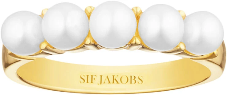 Ring i 925 sterling sølv, forgyldt med 18 karat guld, blankpoleret overflade, med ferskvandsperler.