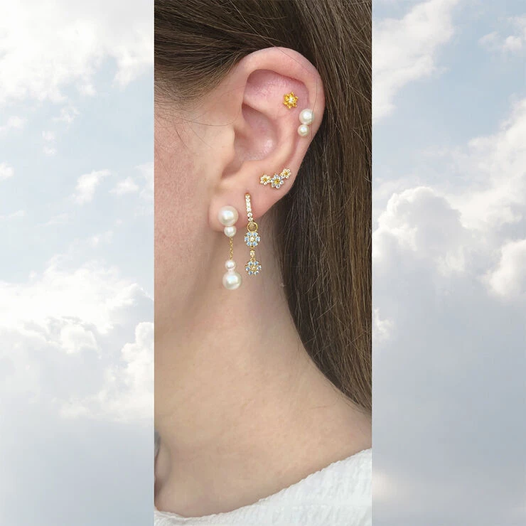Smuk ørering med hvide ferksvandsperler, klar sten og kæder. Sælges enkeltvis.