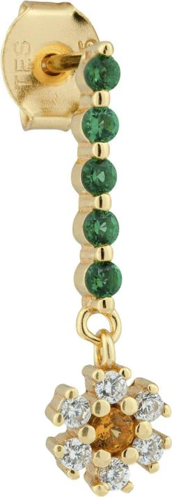 Smuk blomster ørestik med sten i farverne smaragd, orange og klar. Sælges enkeltvis.