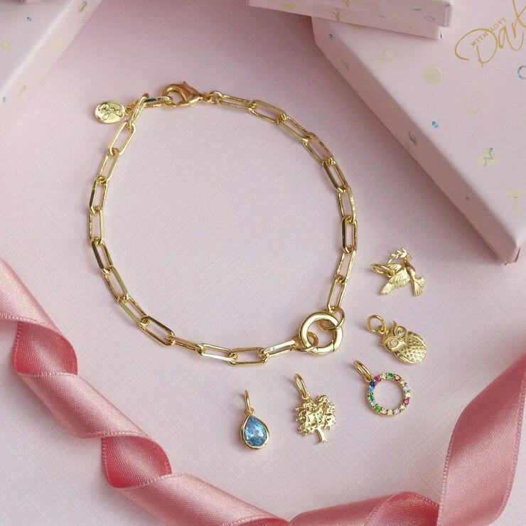 Her er armbåndet du har ventet på. Det er en ny og moderne fortolkning af det traditionelle charms-armbånd. Du kan sætte dine yndlingsvedhæng på det runde link, og på den måde skabe dit helt personlige smykke.